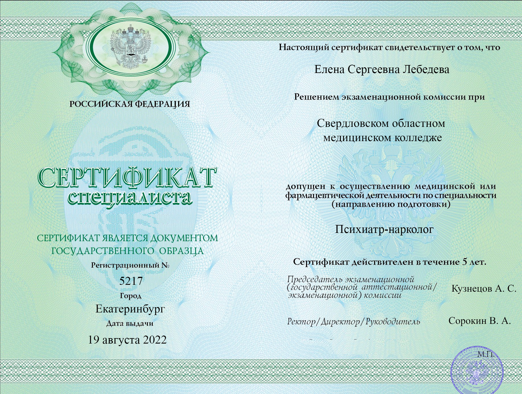 Елена Сергеевна Лебедева врач нарколог клиники доктора Стукаловой в Форосе